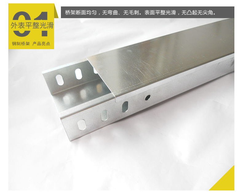 新型組合橋架結構簡單,橋架可組合或拆分,極大的方便了橋架的運輸,降低了運輸成本;通過調節下折邊連接孔與梯棍上通孔的對應連接位置,即可調節橋架內部的空間;由于梯棍的截面是圓角矩形,敷設在橋架內的電纜受到擠壓時,使電纜受到梯棍拐角的摩擦較小