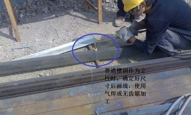 3、鍍鋅槽鋼采用無(wú)齒鋸切割,嚴(yán)禁使用電氣焊切割。