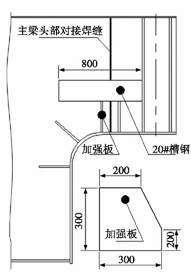 ( 2) 主梁頭部彎板開裂焊縫進行修復、加固,如圖5 所示。