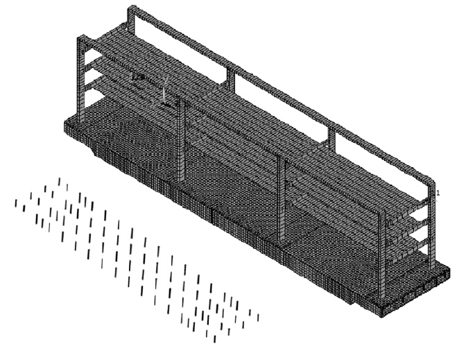 采用有限元理論建模分析結(jié)構(gòu)抗震研究是一個重要手段,因此需要建立一個既能滿足工程精度要求、又能反映結(jié)構(gòu)力學特性的精準有限元模型。通常理論建模依據(jù)設計圖紙,且隱含了多種理想化假定或簡化,理論分析結(jié)果與實測識別結(jié)果之間不可避免地會存在一定的偏差。基于動力實測結(jié)果識別結(jié)構(gòu)的模態(tài)參數(shù),利用有限元模型修正技術(shù),修正初始有限元模型,可以使理論分析模態(tài)和試驗識別模態(tài)之間的誤差達到最小。