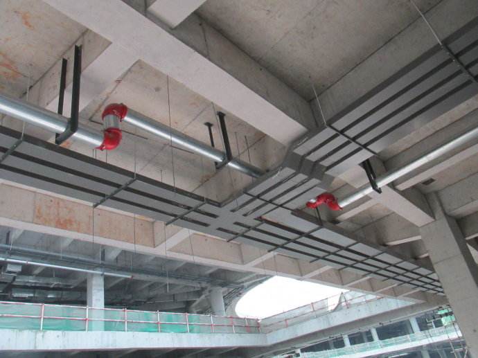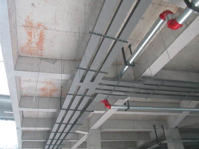 4.在有防火要求的區(qū)域內(nèi),應(yīng)在電纜梯架、托盤內(nèi)加入具有耐火或難燃性能的板、網(wǎng)等材料構(gòu)成封閉或半封閉結(jié)構(gòu),并采取在橋架和支撐表面噴涂防火涂料等措施。整體耐火性能應(yīng)符合國家有關(guān)規(guī)范或標(biāo)準(zhǔn)的要求。鋁合金電纜橋架不應(yīng)使用在抗火性能要求高的地方。