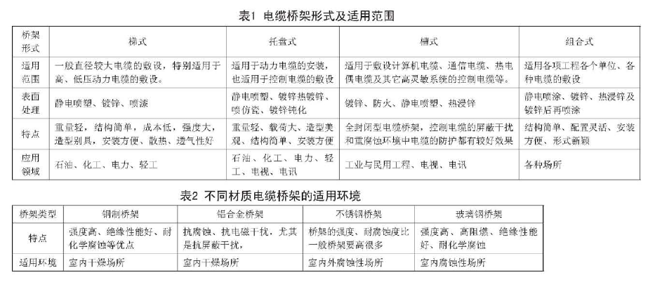 電纜橋架按結構形式可分為梯式、托盤式、槽式和組裝式橋架等,按材質可分為鋼制橋架、鋁合金橋架、不銹鋼橋架、玻璃鋼橋架等。采用何種材質與結構形式的橋架應根據電纜橋架所使用的環境、敷設電纜性質、部位來確定。
